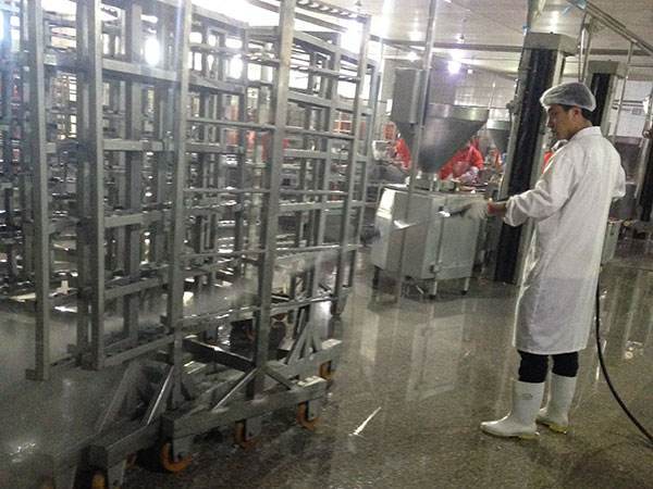 車間內(nèi)的操作臺、傳送帶、運(yùn)輸車、工器具應(yīng)當(dāng)用無毒、耐腐蝕、食品級、不生銹、易清洗消毒、堅(jiān)固的材料制作。