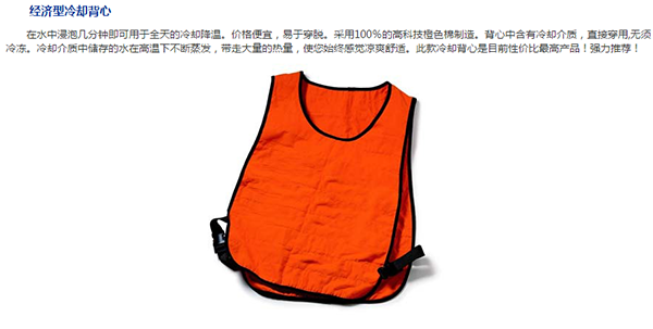 冷卻背心,美國ALLEGRO生產(chǎn)的降溫用品,有“人體空調(diào)衣”之稱,是高溫工作者的必備用品。