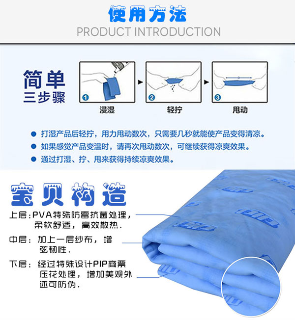 降溫毛巾,使用方便、不用冷藏、不需用電,一次加水,使用時間長達(dá)數(shù)小時,工作時佩戴,不僅能止汗,還能使身體感到?jīng)鏊喼笔歉邷刈鳂I(yè)者的必備降溫用品。