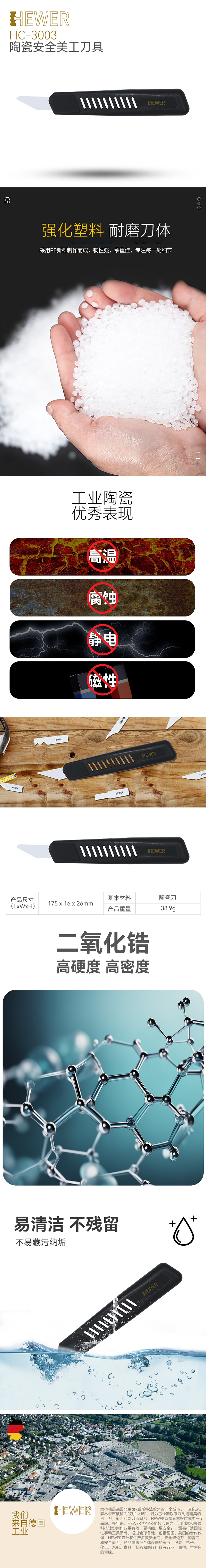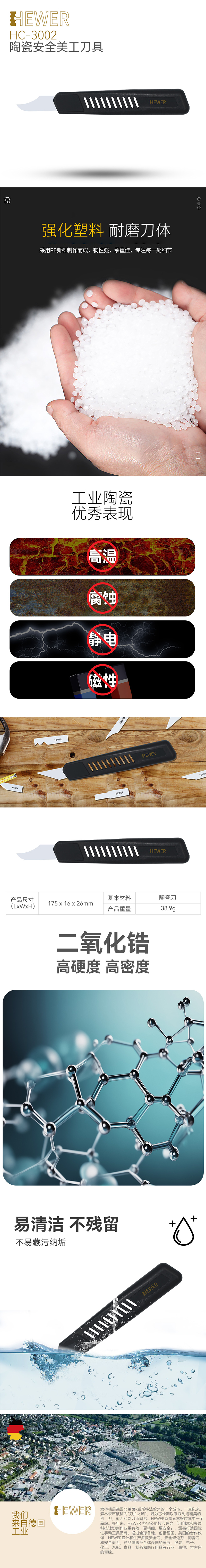 HEWER MultiCERA 陶瓷刀具可以用作修邊及切割之用。100%二氧化鋯陶瓷刀片具多種獨特性包括耐磨、永不生銹、不導電、高密度、高硬度、無毛細孔、不會藏污納垢、清洗容易及高安全性等優(yōu)點。