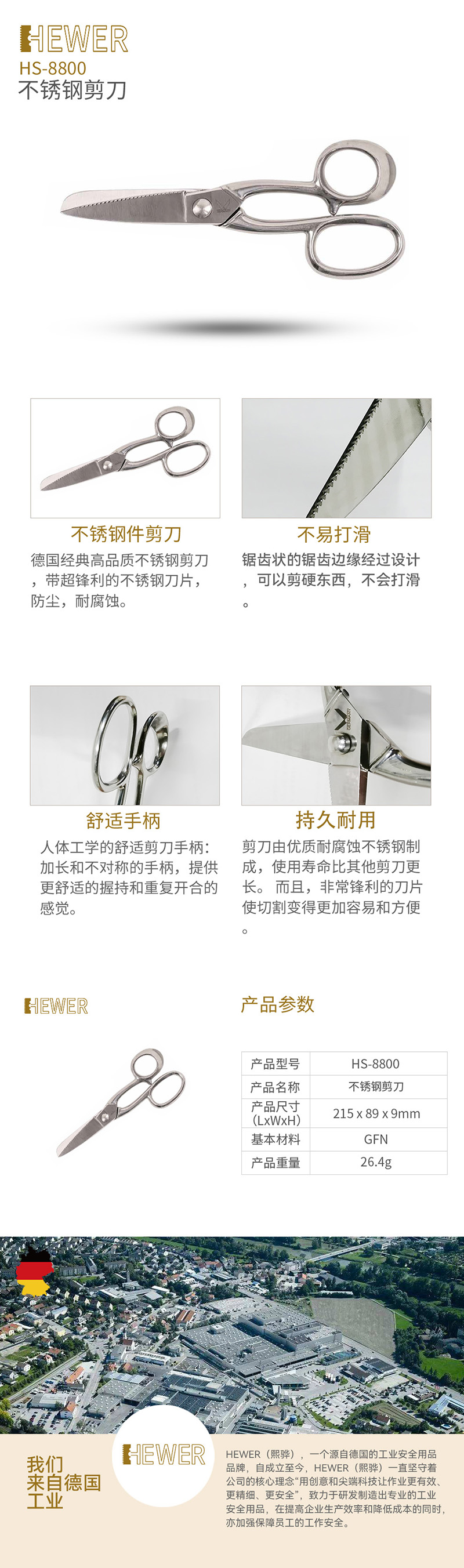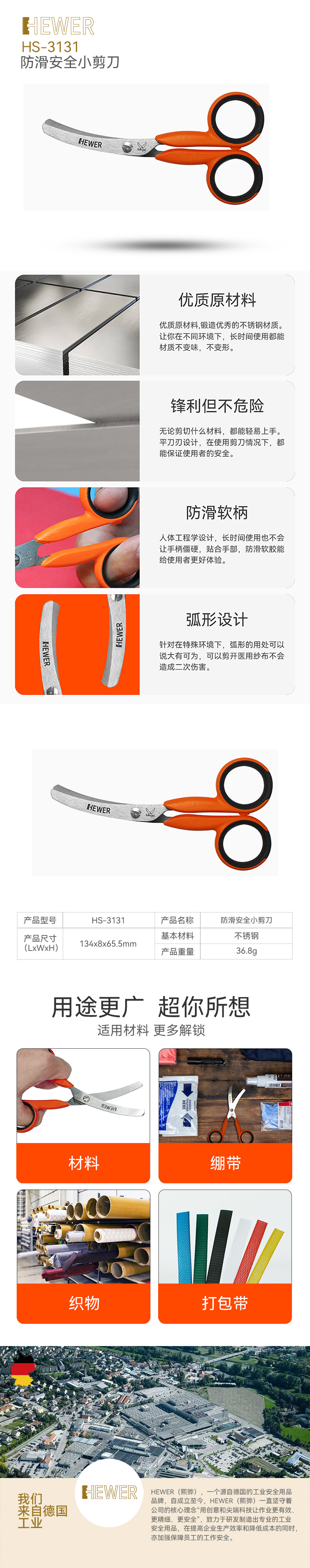 HEWER MultiCUT 安全剪刀包括圓頭及平刀刃設(shè)計的安全工業(yè)剪、食品級切肉剪、兒童剪刀及多款功能性工業(yè)剪。產(chǎn)品尤其以安全不傷手防滑剪刀被廣泛應(yīng)用于各行各業(yè)中。
