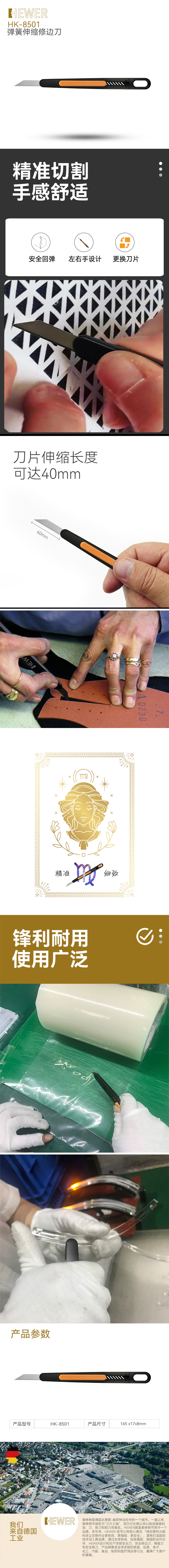 HEWER MultiSAFE 安全刀具可當作安全開箱刀、安全切割刀及安全美工刀使用,多種不傷手技術(shù)設(shè)計包括隱藏式刀片、全自動及自動刀片縮回讓產(chǎn)品被廣泛應(yīng)用于不同行業(yè)及崗位中。