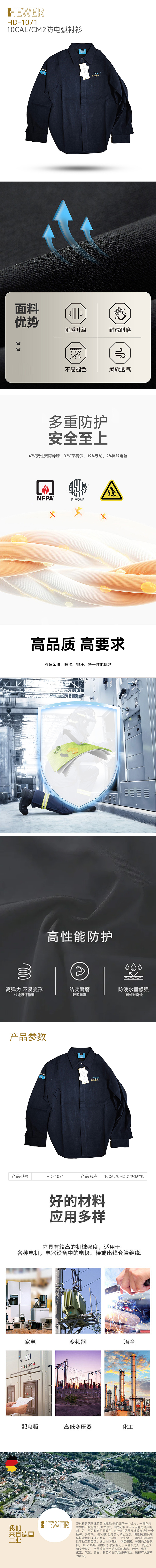 HEWER MultiSUIT 電弧防護服采用Tecasafe? Plus 700本質(zhì)阻燃面料制造,有助穿著者免受熱量影響,防止服裝破裂,并且在暴露于高強度、短時間爆炸和電弧火災時不會著火或繼續(xù)燃燒。